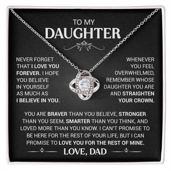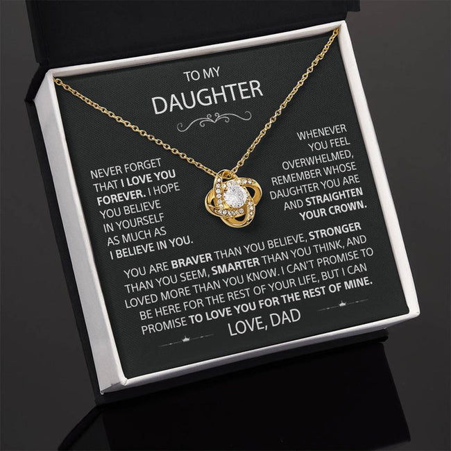 Give your daughter a gift she will treasure for a lifetime. Order the To My Daughter – Love Knot Necklace today and let her know just how much she means to you.